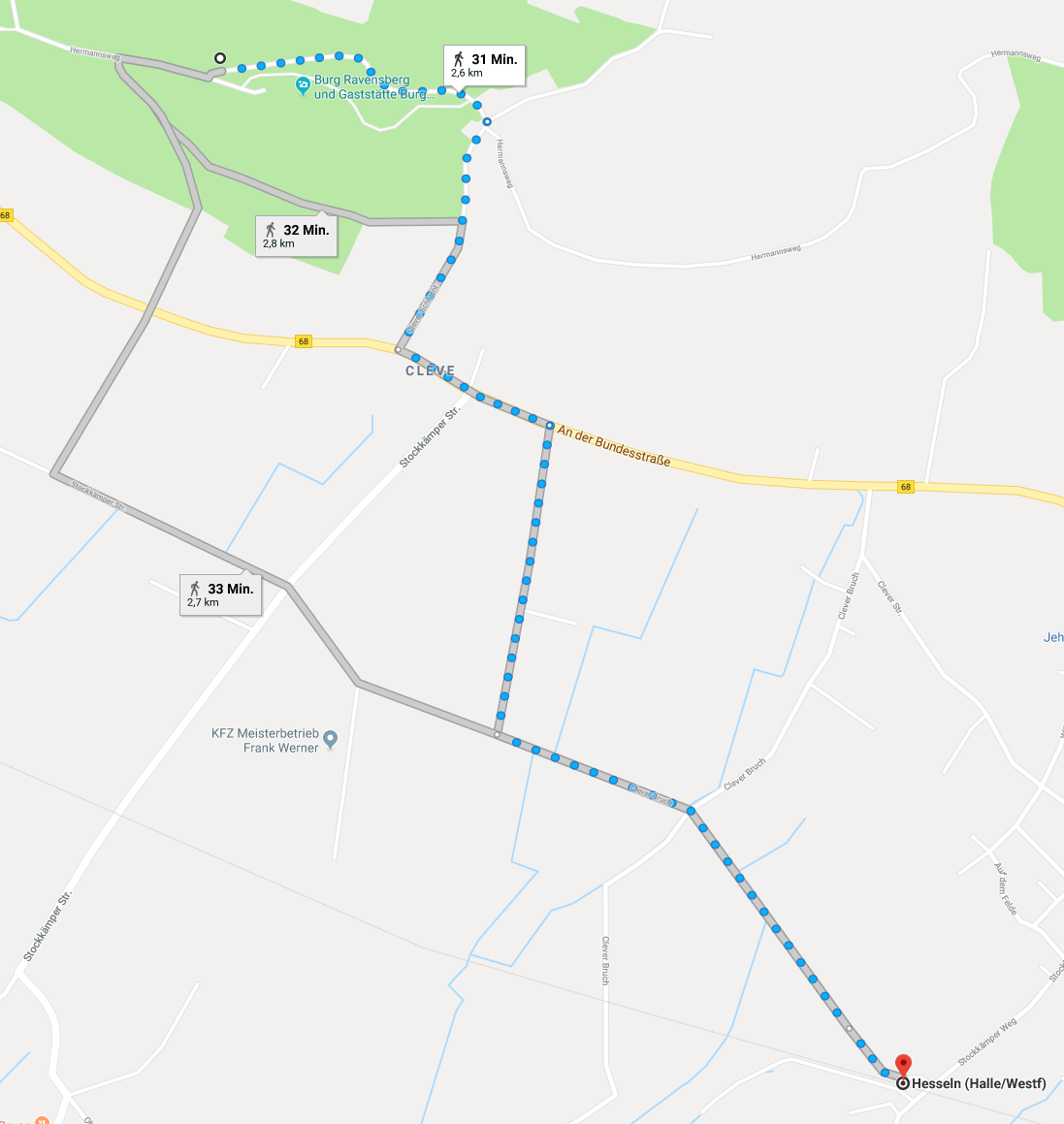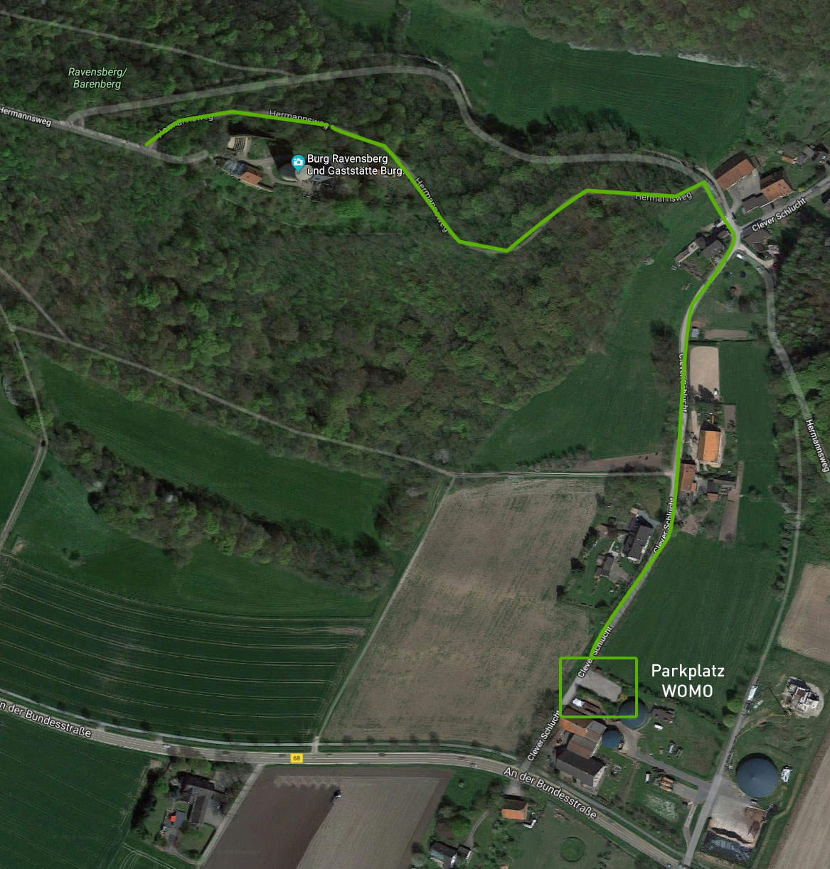 Am besten via Fahrgemeinschaft bis zum Parkplatz «Burg Ravensberg» [Barenbergweg 47, 33829 Borgholzhausen] & dann 10-15 min. zu Fuß